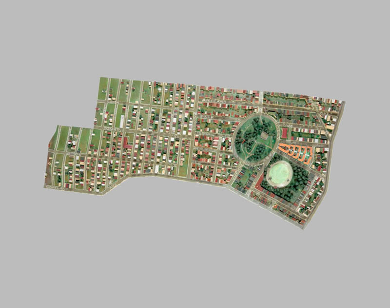 The large Composite image was georeferenced and placed in Google Earth. Viewing the Model in this platform allows several new functions: it may been seen obliquely or at an angle, as it is by viewers seeing the physical model; a digital elevation database in Google Earth gives the Model image height and depth; and changes over time can be seen by comparing the Model 1940 image to the modern satellite image using the transparency slider. The Google Earth App can be downloaded - choose Google Earth Pro for Desktop. The Google Earth KMZ of the Model will download here and open in Google Earth App by clicking on it after download.