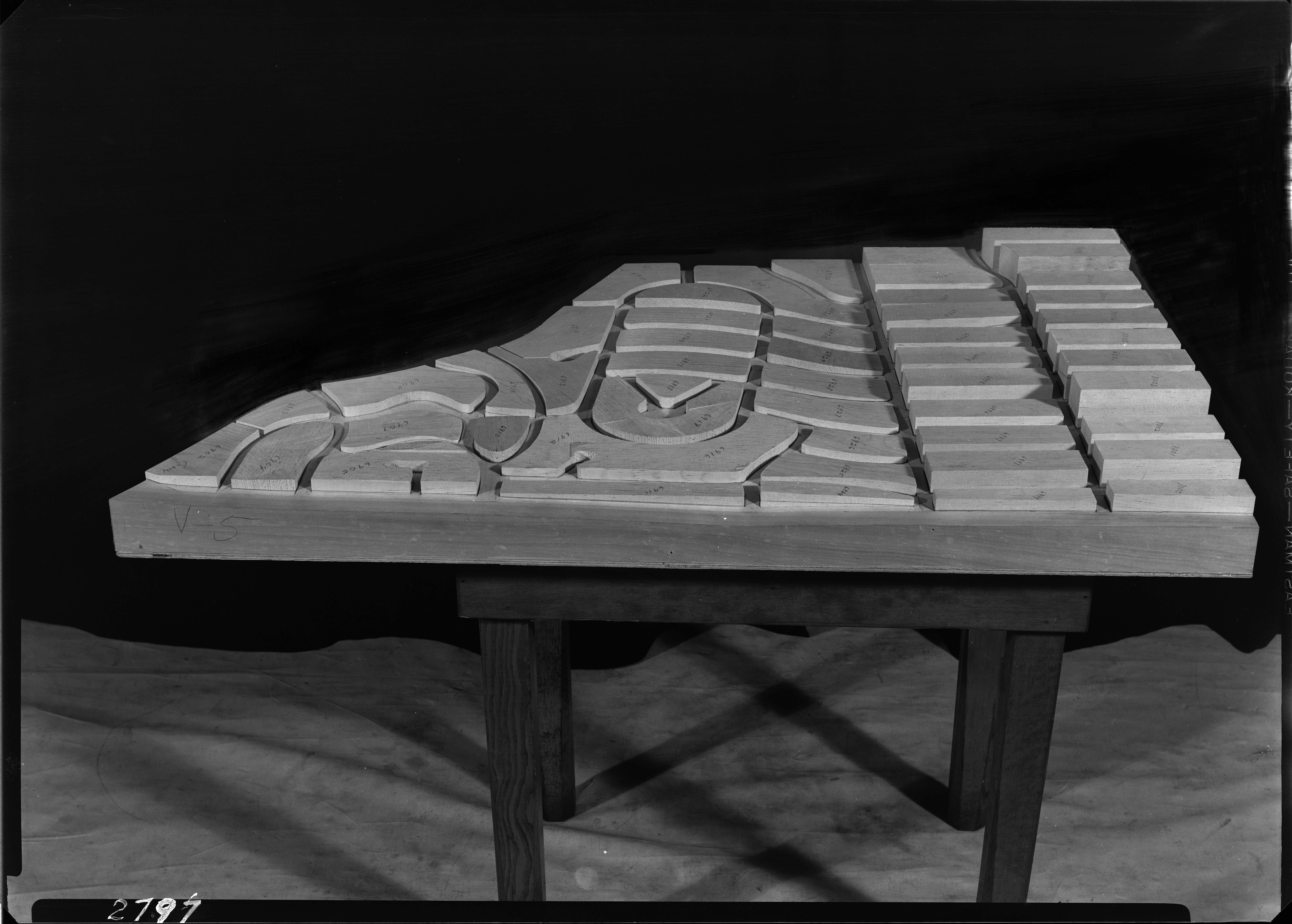 Some details of the model's history: it is a 42 by 38 foot wooden replica of the city of San Francisco as it was in 1940 in 158 pieces at a scale of 1 inch to 100 feet. The pieces contain about 6,000 removable city blocks. The model was built by The Works Progress Administration in the late 1930's, under the New Deal. It was first displayed in sections in the Golden Gate International Exposition on Treasure Island in San Francisco Bay in 1939. In 1940-1942 it was displayed in San Francisco City Hall. The model was used as an urban planning tool by San Francisco city agencies and departments through the 1960's. In 1968, the downtown portion of the model became a research and planning tool in the Environmental Simulation Laboratory in the College of Environmental Design at UC Berkeley. The model has not been on public view, in its entirety, since 1942. UC Berkeley is the current owner of the model. The intent of the makers of the model was to have it updated as the city changed over time and they conceived of it as a tool to help understand and plan for changes in the city's built environment. Read a San Francisco Planning Department document from 1940 describing the building and purposes of the model.