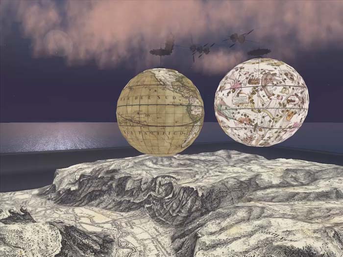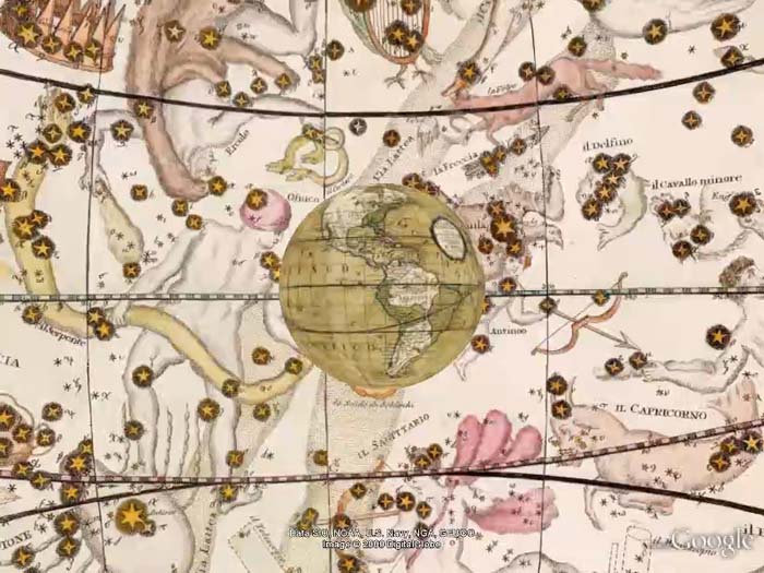 Cassini Terrestrial and Celestial Globes 1790 videoGiovanni Maria Cassini made a Terrestrial Globe in 1790 and a Celestial Globe in 1792. This video shows both globes virtually recreated in Google Earth, with the Celestial Globe turned inside out and placed 64 million meters outside the Terrestrial Globe. The same space can be viewed live in Google Earth (requires download of app, turn off Atmosphere layer in Google Earth). Read full article |