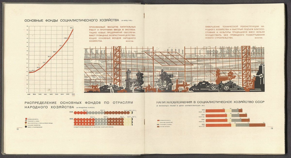 More amazing Soviet data visualization: in Russian, the 1936 celebration of achievements since the 1918 revolution. Inspired isotypes and art work. Source for the 1939 English edition (see our previous tweet). https://t.co/5T2C6LKjPL and https://t.co/9fHzY9UOGU - 1939 edition. https://t.co/0kc3VC4foJ