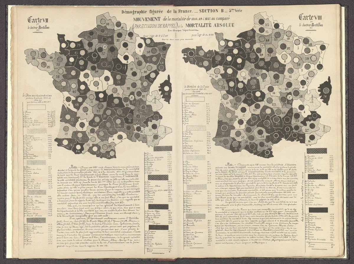 A major milestone in demographic analysis and data visualization - Bertillon's 1874 La démographie figurée de la France. Mortality in France by age, sex and marital status. With thanks to @infowetrust for bringing it to our attention. https://t.co/kGof0MyBkK https://t.co/Z1V1oCXF0i